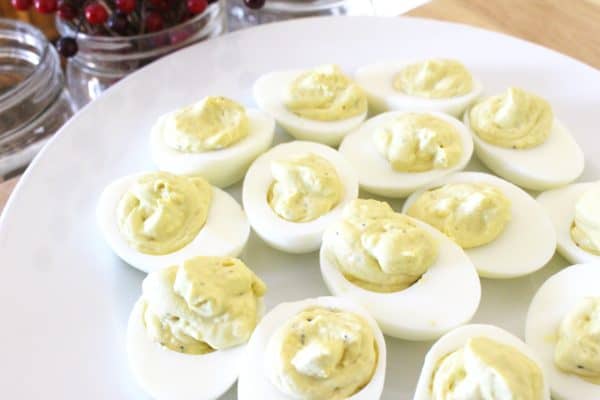 ⭐⭐⭐⭐⭐ Creamy and delicious, no holiday meal is complete without a giant tray of deviled eggs! If you have some olive oil on hand, you can even make things a bit more special by making your own mayonnaise! Either way, these deviled eggs will disappear faster than you can fill the platter!