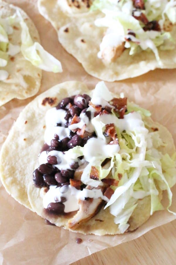 Hey Reader! Chicken tacos are a delicious, easy dinner idea for any day of the week! And these chicken bacon ranch tacos are going to be an instant family favorite! This taco recipe uses homemade tortillas and ranch dressing alongside bacon and grilled chicken, but can be made with store-bought ingredients too for a fabulous and simple dinner! Plus, honestly, any excuse to eat bacon, right? ;-) Try them for dinner tonight! Chicken Bacon Ranch Tacos ⭐⭐⭐⭐⭐ These tacos have juicy, grilled...