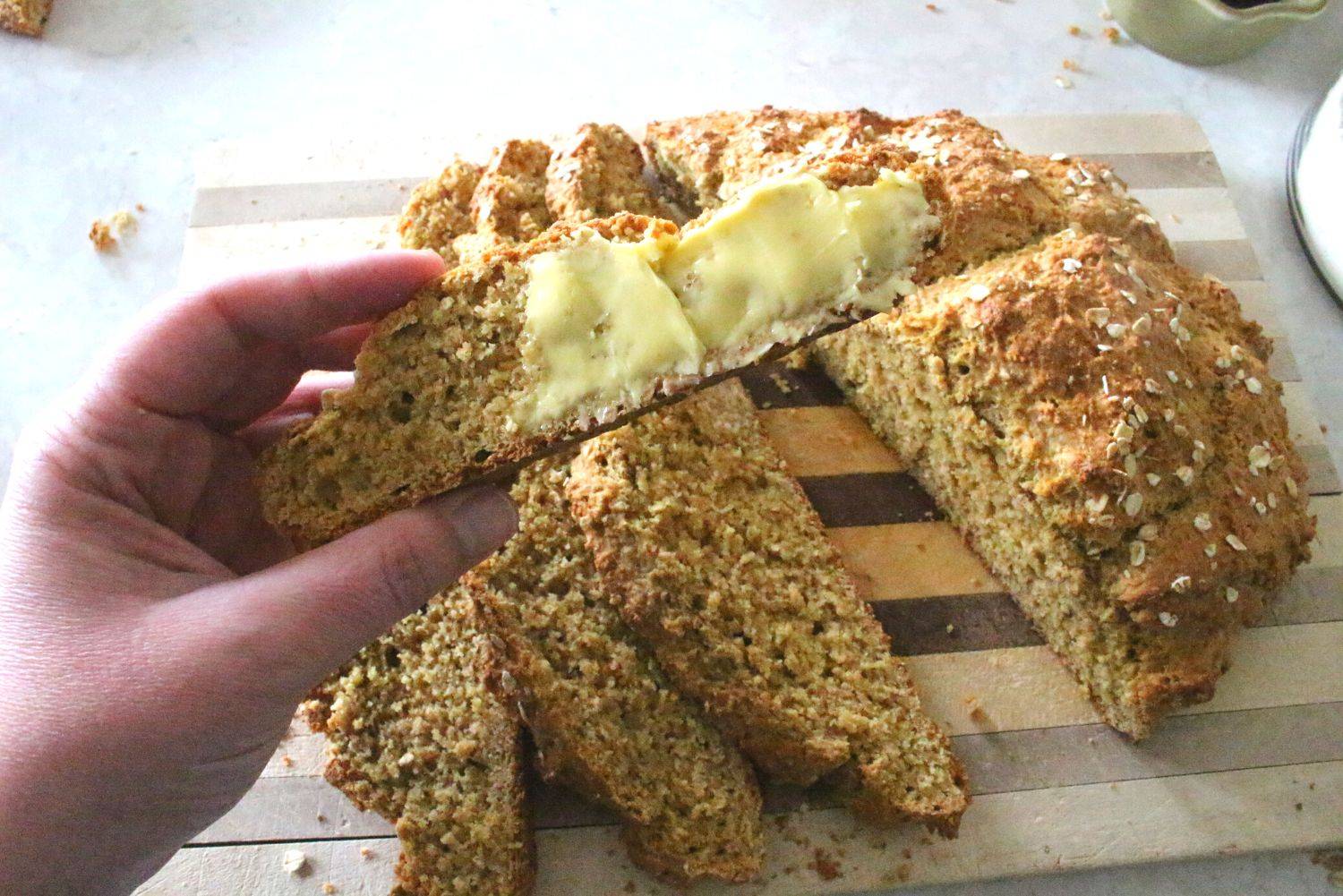 This version of a quick and easy Irish soda bread is made with whole grain and all-purpose einkorn flour, baking soda, homemade buttermilk, egg, butter, and a touch of salt. Also included are the instructions for making a sweet Irish soda bread with raisins and sugar! Additionally, while this recipe calls for both whole-grain einkorn flour and all-purpose einkorn flour, you can use all of one or the other if desired and still have a wonderful bread. Serve this alongside a bowl of Irish Roast...